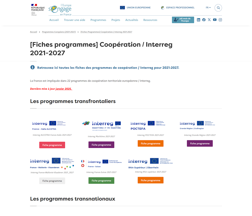 Retrouvez ici toutes les fiches des programmes de coopération / Interreg pour 2021-2027.