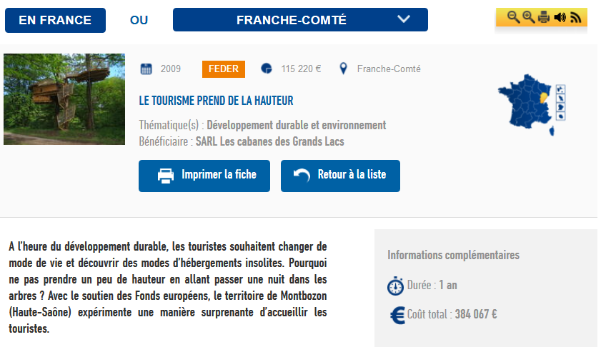 Pourquoi ne pas prendre un peu de hauteur en allant passer une nuit dans les arbres ? Avec le soutien du FEDER, le territoire de Montbozon (Haute-Saône) expérimente une manière surprenante d'accueillir les touristes. L'entreprise Les Cabanes des Grands Lacs a eu l'idée de valoriser le potentiel touristique de chênes centenaires en aménageant un village de cabanes dans les arbres, première installation de cette envergure dans la région.