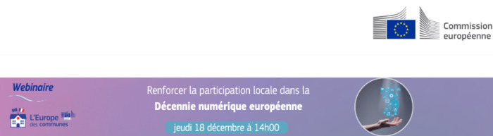 Ce **webinaire** se déroulera le **18 décembre 2025** et présentera : \- les **enjeux** et les synergies possibles **entre** la **Décennie numérique européenne** et les **priorités locales** ; \- les **services** existants de l'**UE** soutenant la **transformation numérique locale** ; \- l’**Agenda