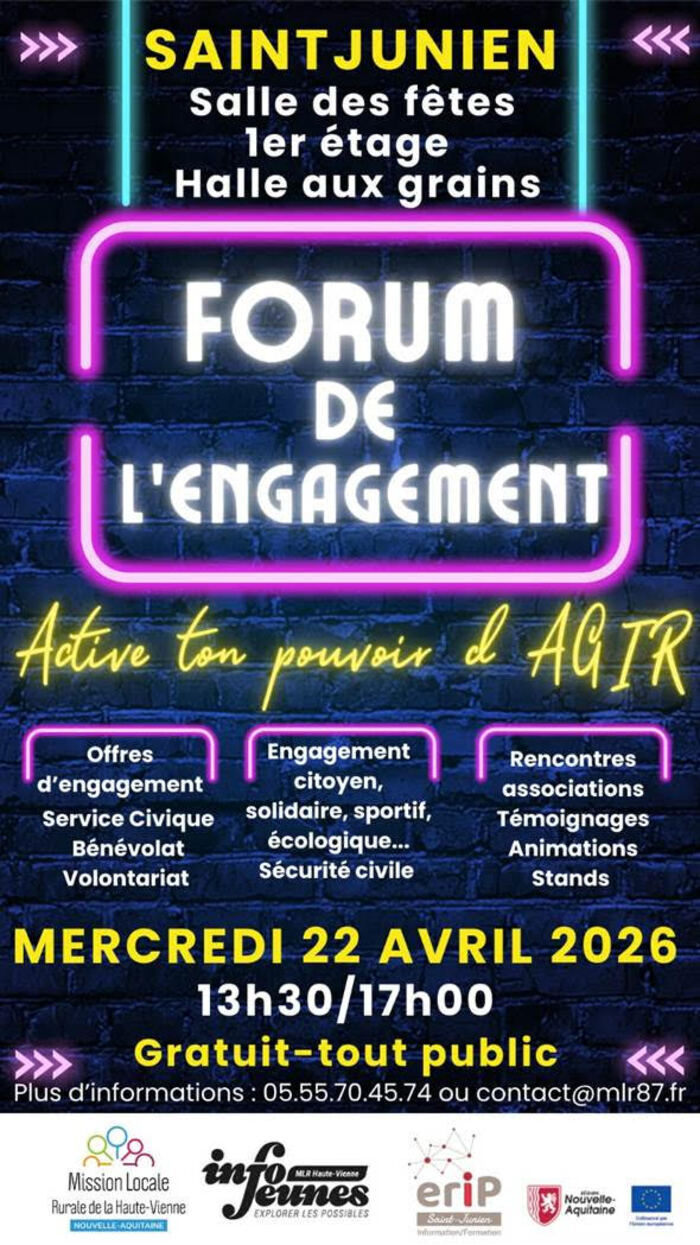 La Mission Locale Rurale de la Haute-Vienne, l’ERIP Saint Junien et Info Jeunes Saint Junien coorganisent le 2ème Forum de l’Engagement à Saint-Junien "Active ton pouvoir d’agir".