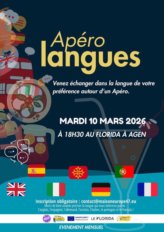 Description Débute le 10/03/2026 Termine le 10/03/2026 Le Florida - 95 Bd du Président Carnot, 47000 Agen Thématique(s): Culture Type d’évènement Atelier - Stage Mode de participation Hors ligne Région Nouvelle-Aquitaine Image Participez à l'événement