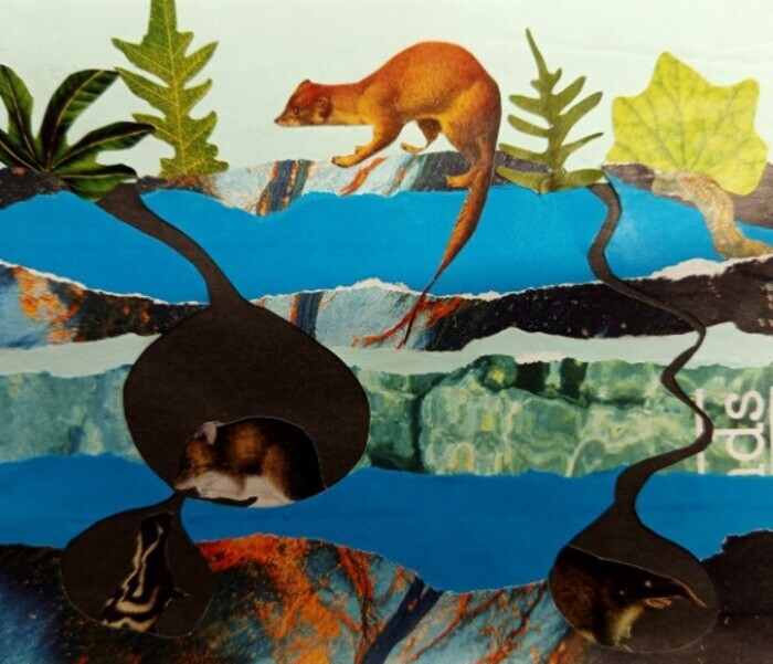 Les ateliers de collage de Judith Chomel explorent le monde souterrain comme un territoire secret, peuplé de galeries, de réseaux invisibles et de vies cachées. À partir de papiers découpés et d’images assemblées, les participants inventent des univers loufoques où le réel glisse vers l’imaginaire.