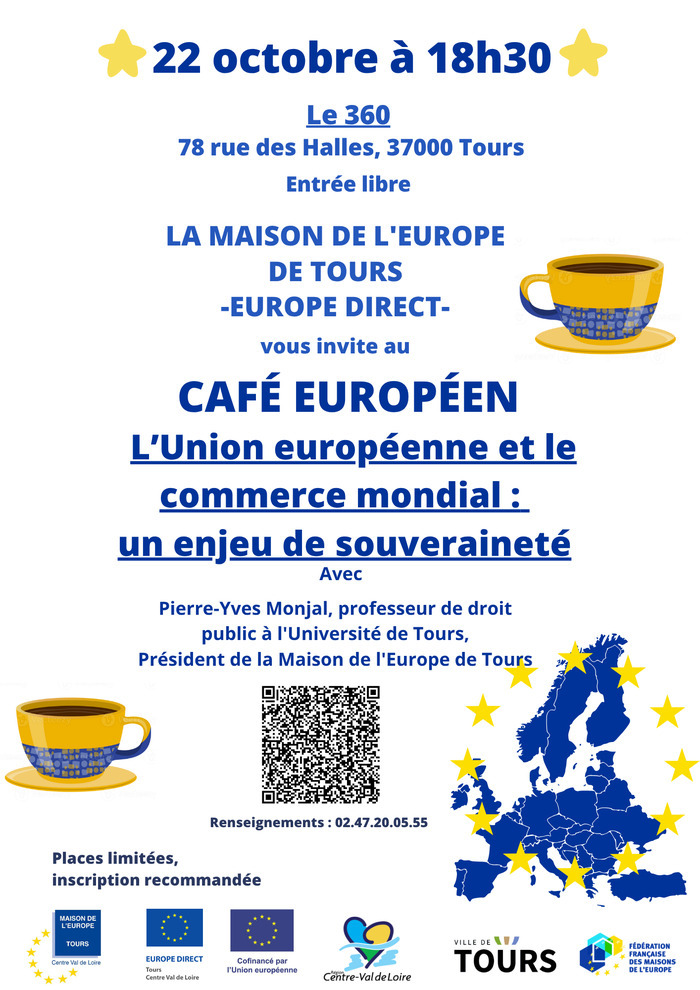 Café européen " L'Union européenne et le commerce mondial : un enjeux de souveraineté" avec Pierre-Yves Monjal, professeur de droit public à l'université de Tours et Président de la Maison de l'Europe de Tours.