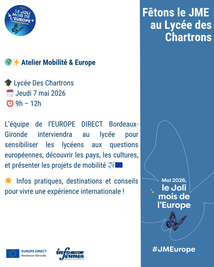 LâĂ©quipe de lâEUROPE DIRECT Bordeaux-Gironde interviendra au lycĂ©e pour sensibiliser les lycĂ©ens aux questions europĂ©ennes, dĂ©couvrir les pays, les cultures, et prĂ©senter les projets de mobilitĂ© âïžđȘđș