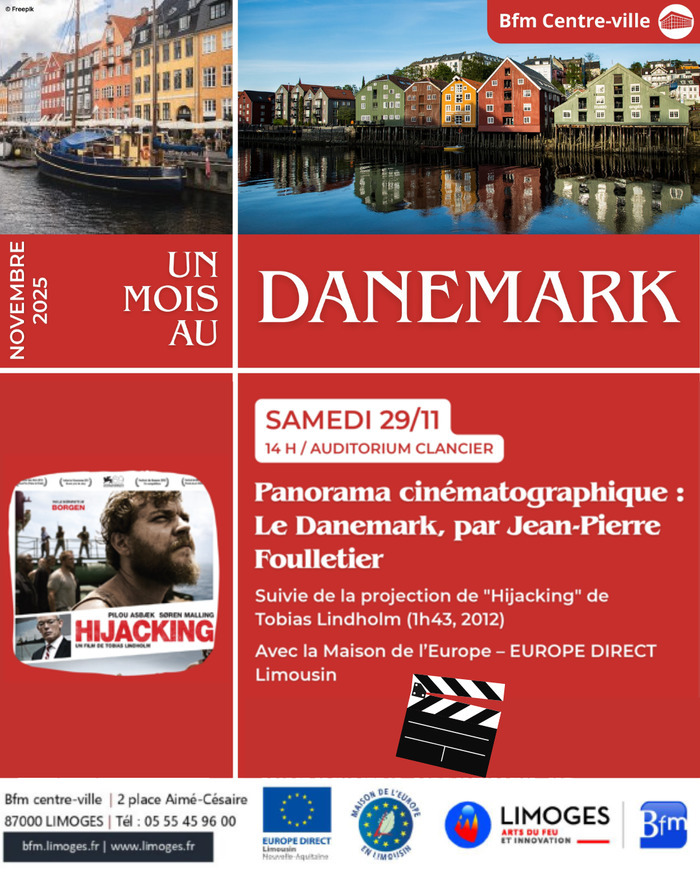 La Bibliothèque francophone multimédia (BFM) de Limoges et la Maison de l’Europe – ERUOPE DIRECT Limousin invitent le public à un panorama cinématographique consacré au Danemark présenté par Jean-Pierre FOULLETIER.