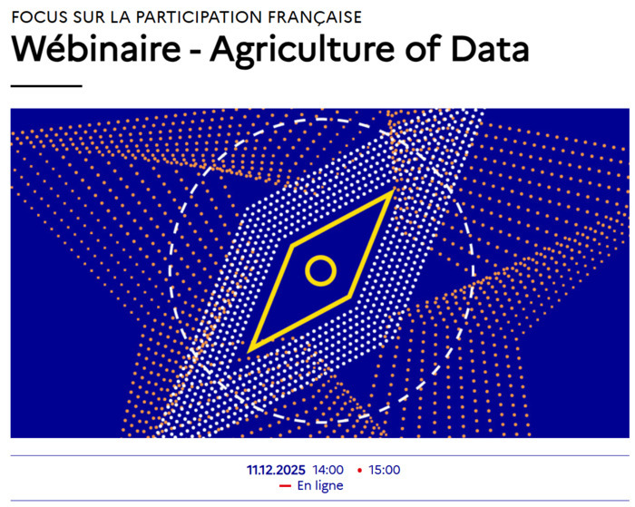 Dans la continuité du webinaire organisé le 26 novembre par le partenariat Agriculture of Data, un **focus** est proposé avec le **Ministère de l’Enseignement Supérieur et de la Recherche** **et de l'Espace** (MESRE) et le **Ministère de l'Agriculture, de l'Agro-alimentaire et de la Souveraineté Alimentaire** (MAASA) sur la participation française :