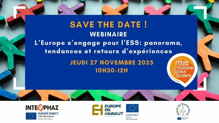 Dans le cadre notre partenariat avec la CRESS Hauts-de-France et Le Mouvement Associatif, les Centres Europe Direct du Bassin Minier, du Hainaut et de Lille Métropole organisent un webinaire autour de l'action de l'Europe dans le champ de l'ESS.