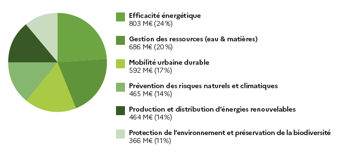 6 grandes thématiques sont soutenues au titre de cet objectif, au premier rang desquelles l'efficacité énergétique.